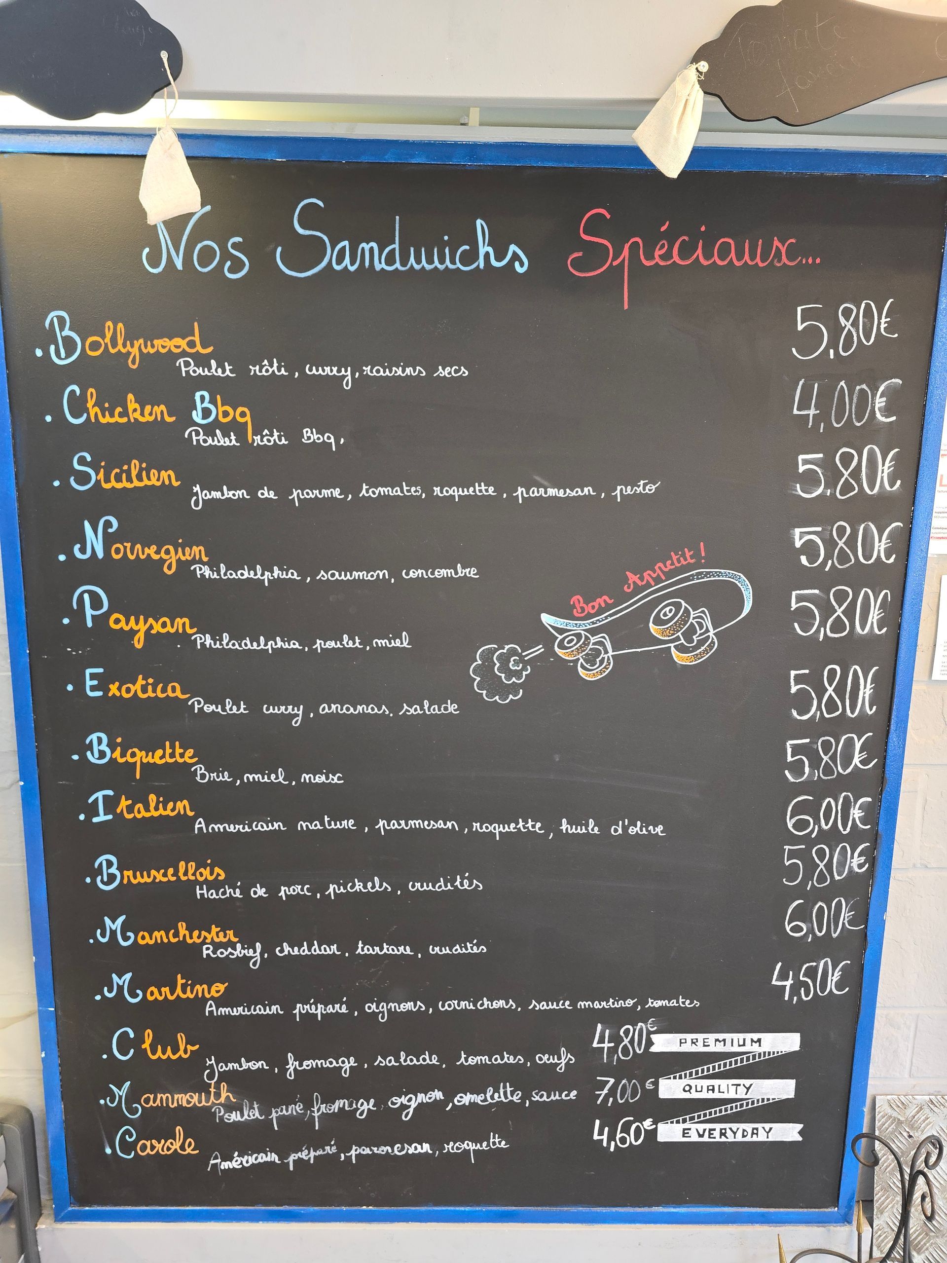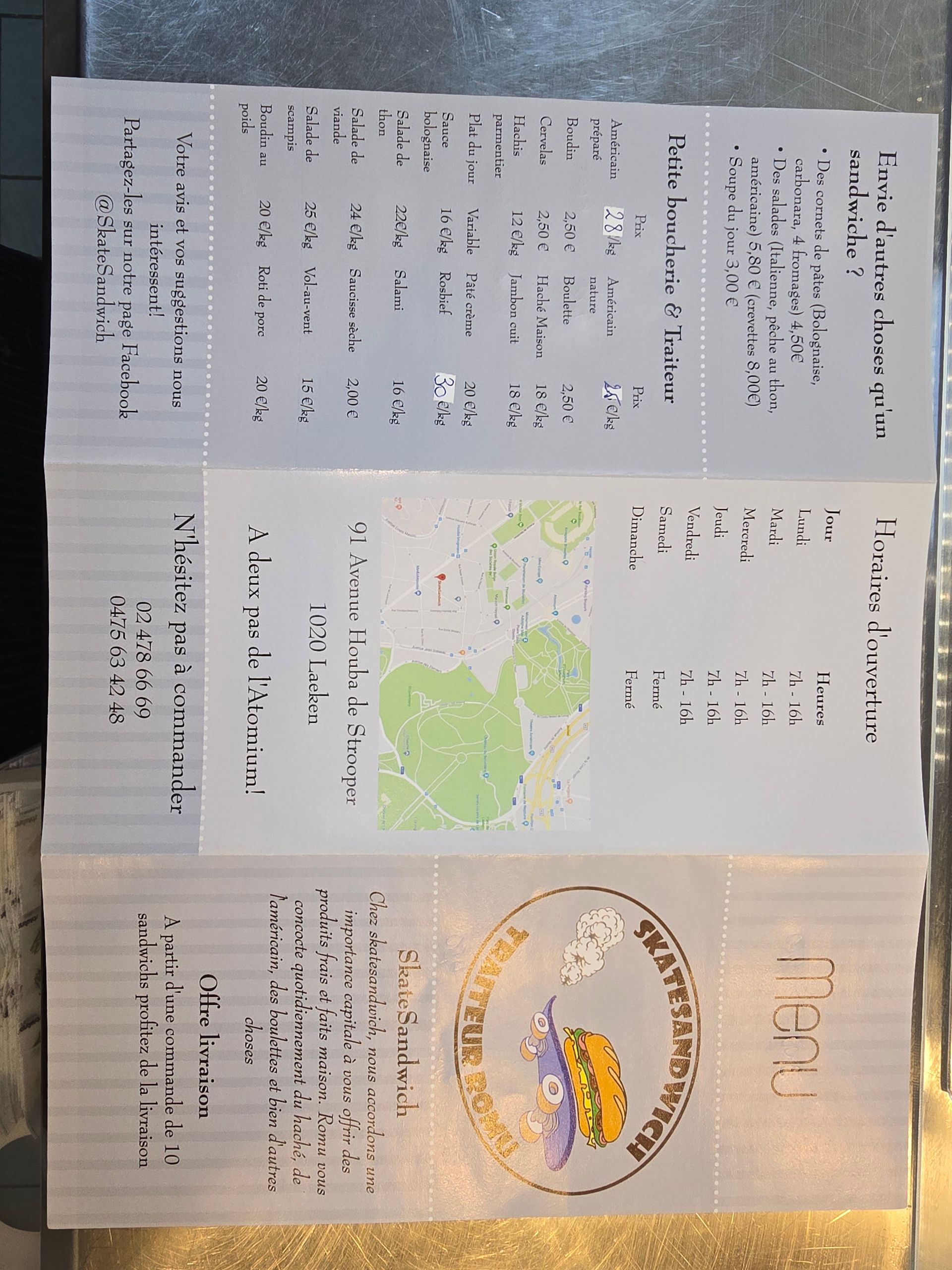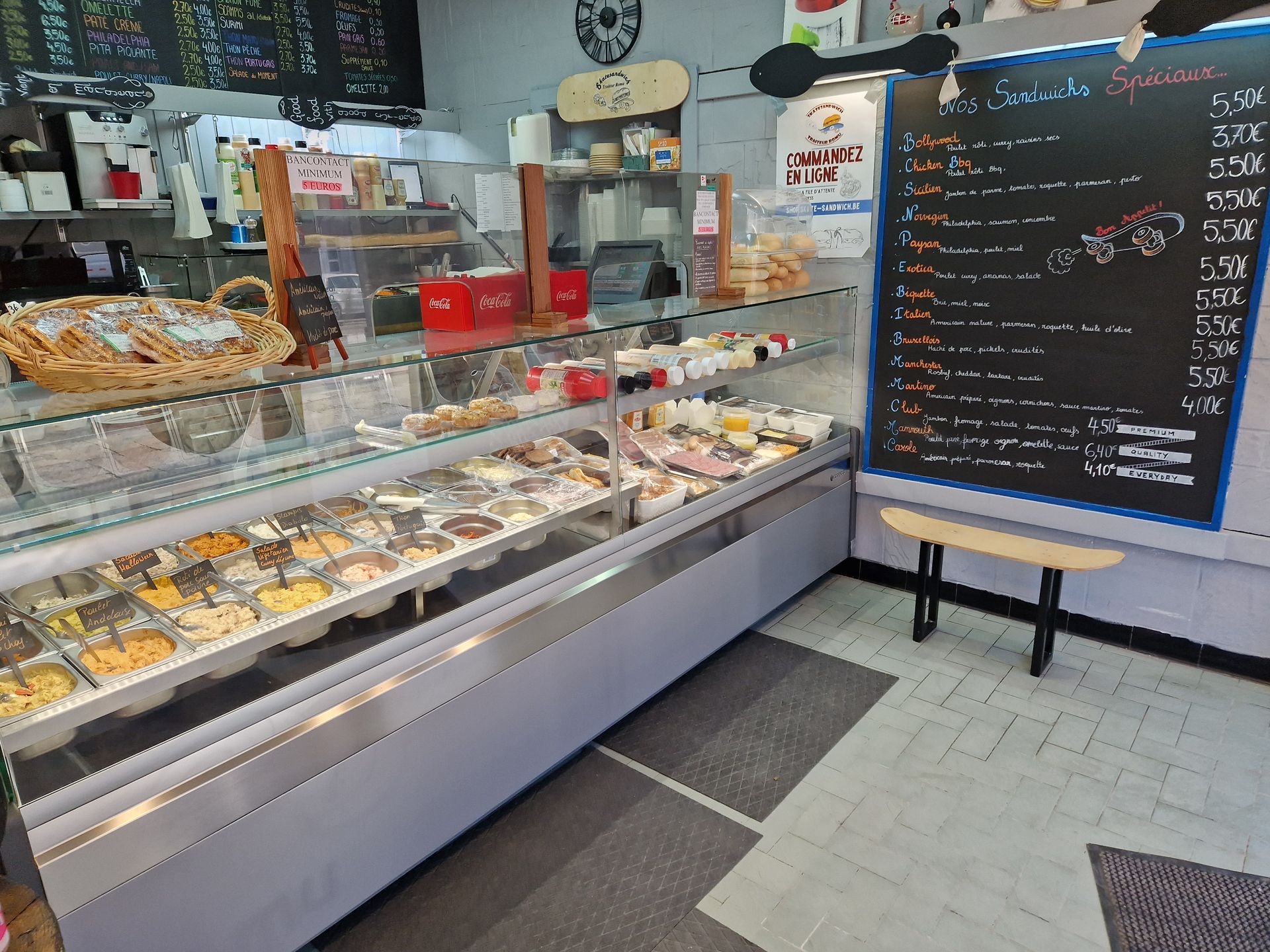 SkateSandwich est une sandwicherie-traiteur à Bruxelles, ayant remplacé depuis deux ans l'ancienne sandwicherie "Chez Noël". Le responsable est diplômé en boucherie-charcuterie-traiteur et a 25 ans d'expérience comme boucher. Il vous propose uniquement des produits à emporter, que vous pourrez apprécier toute l'année.